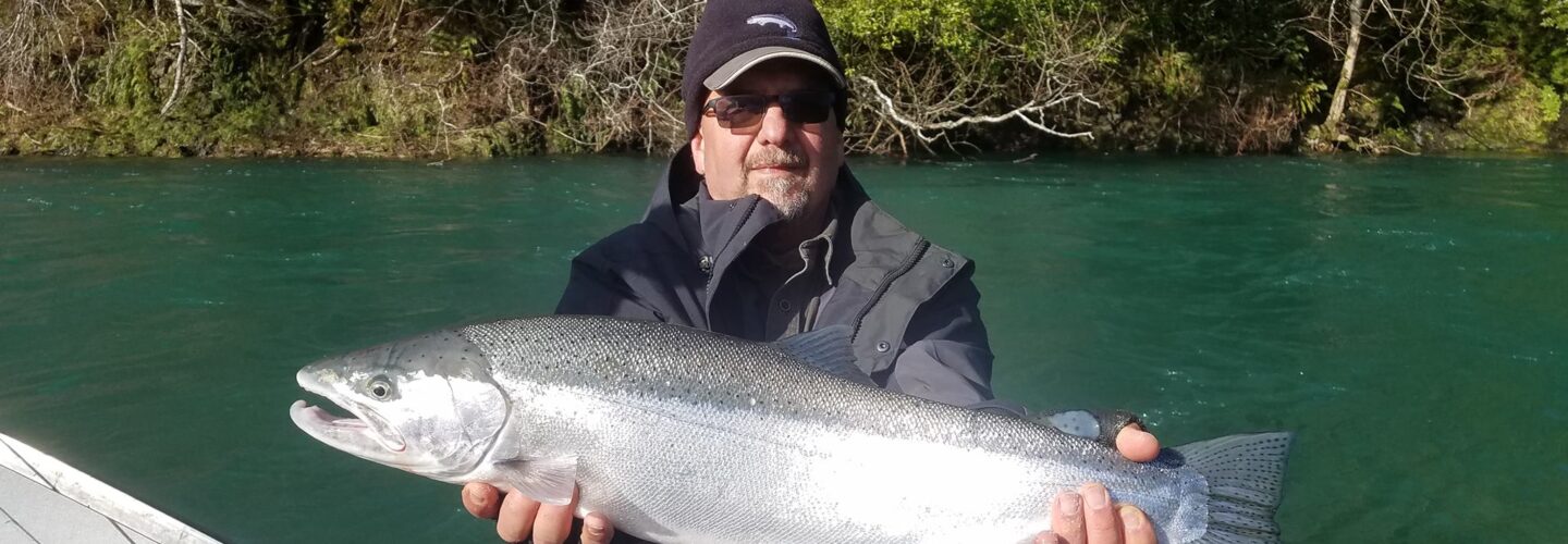 Fall Chinook fishing can be enjoyed from July through December and starts with trolling the estuaries of the Rogue, Coquille, and Coos rivers. As fish move into the rivers, we will follow the migration with the jet boat. This often overlaps with summer steelhead and is a great time to be on the river. In November and December, Fall Chinook fishing is done on the Elk and Sixes rivers when the rains have flushed out the estuaries. We use a 17 foot Willie drift boat for this experience.