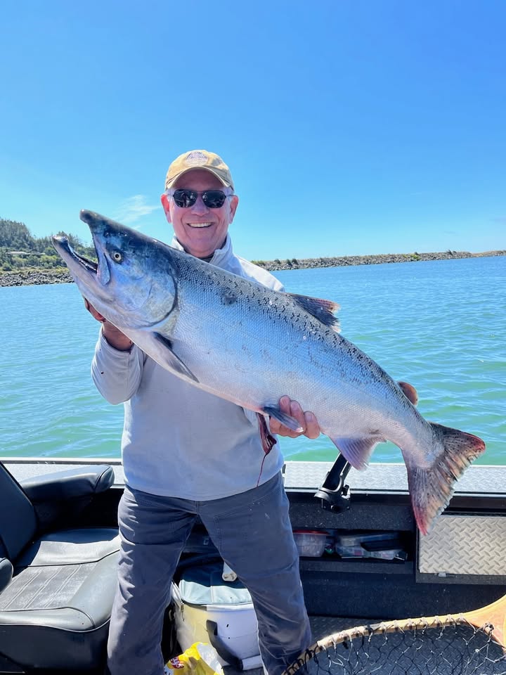 Gold Beach Oregon is the home to Rogue River Fall Chinook Salmon fishing. Rogue River Fall Chinook run large and very fresh from the sea. 23 pound to 30 pound Fall Chinook are most common here on the Lower Rogue River, although in recent years there have been Rogue River Fall Chinook of 66 pounds and one that broke the World Record for Fly Fishing at 71.5 pounds in 2002!